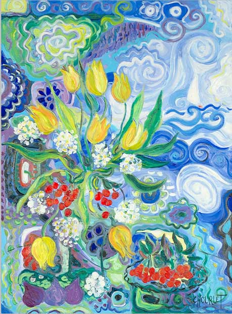 (1075) Tulipes jaunes et bleu préféré