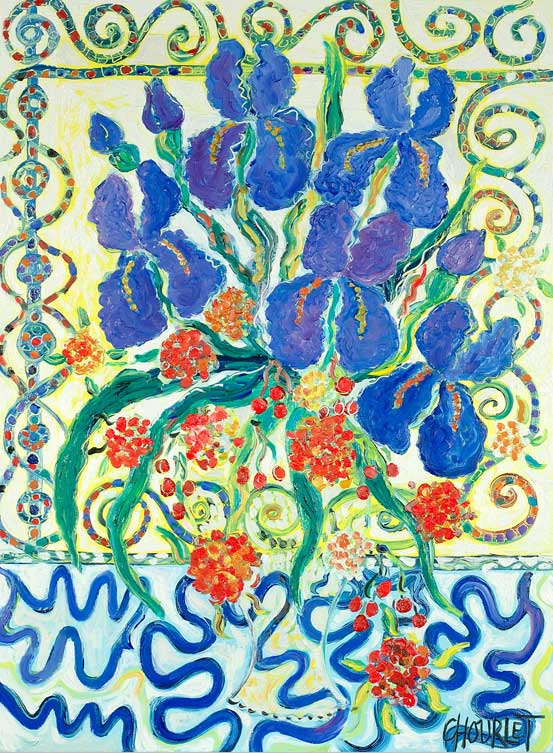(952) Iris bleus et cerises rouges